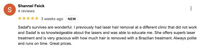 The upfront cost of laser hair removal can seem discouraging, but if you add up all the trips to the salon, razors, shaving cream, and your valuable time, you will find that it isn’t hard to break even by committing to this long-term solution.