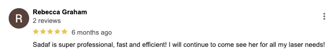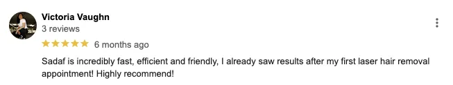 Laser hair removal sessions are short. Small body areas (lip, underarms, bikini) only take 15 minutes! Even larger areas will only take up a small fraction of your day.